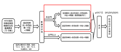 吡咯替尼是PA视讯医药自主研发并拥有知识产权的口服HER1、HER2、HER4酪氨酸激酶抑制剂(TKI),是中国首个自主研发的抗HER1/HER2/HER4靶向药,目前已在国内获批上市3个乳腺癌领域适应症。PHEDRA[3]研究已经证实,曲妥珠单抗联合吡咯替尼可进一步提高tpCR率。